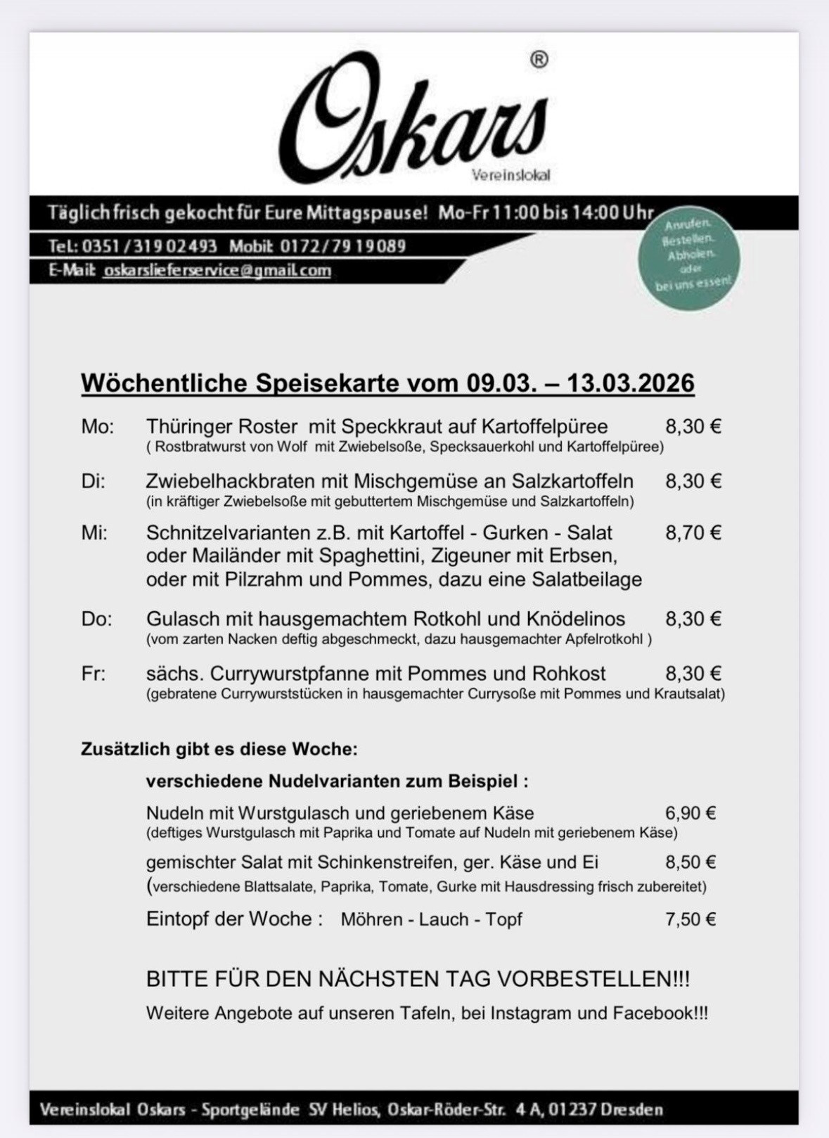 Eure Bestellungen nehmen wir gern telefonisch oder per E-Mail entgegen.