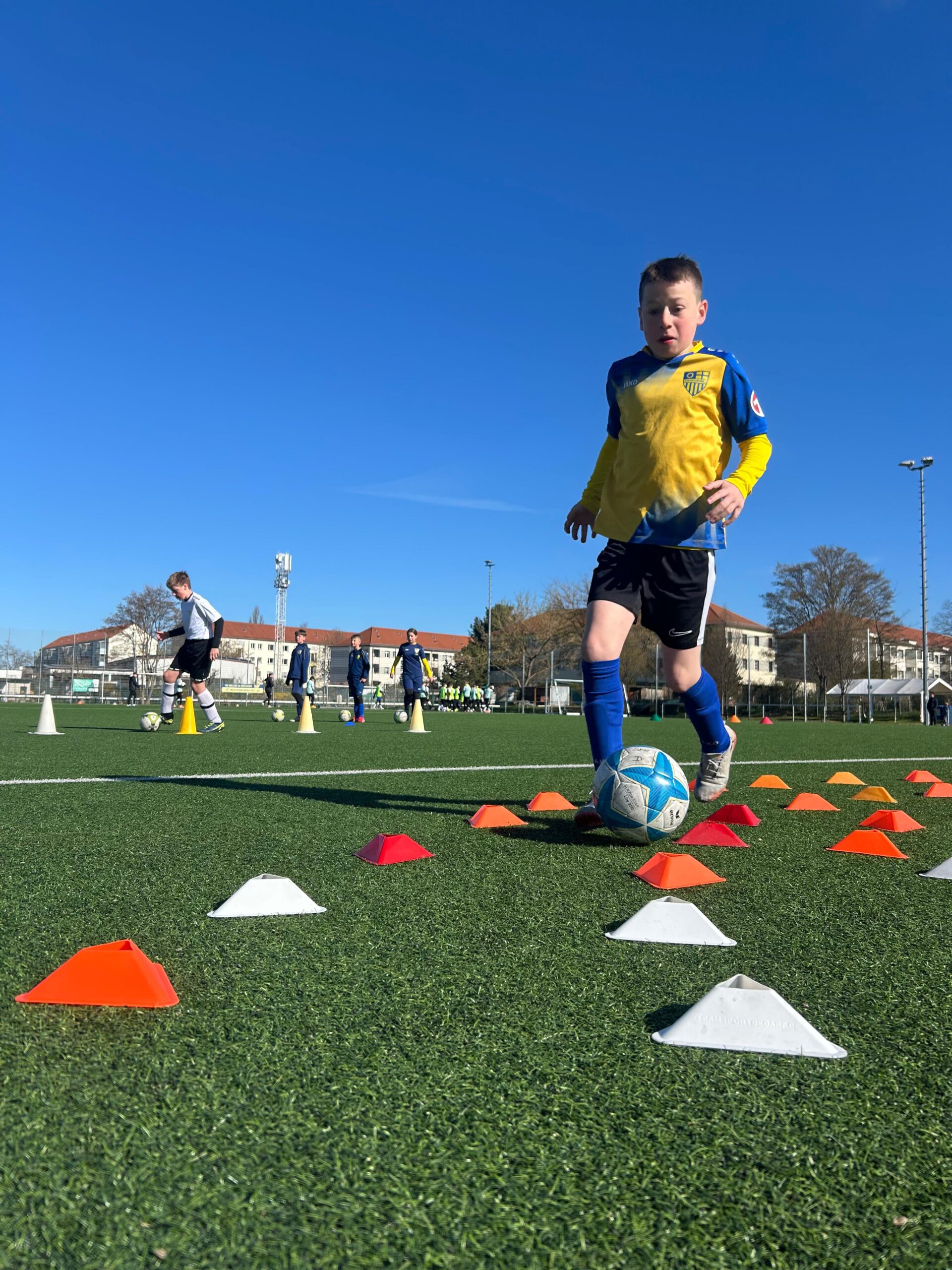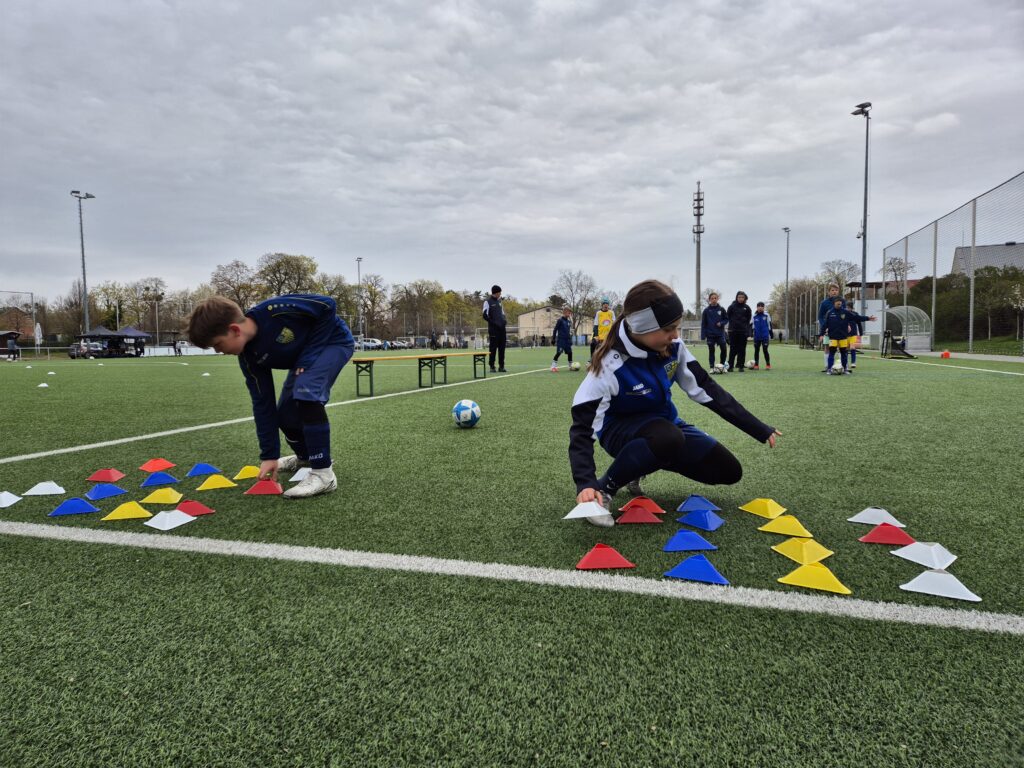 Bevor wir die Sportart gewechselt haben, war höchste Konzentration gefragt. Wir haben am Vormittag mit intensiven Übungen zu Geschicklichkeit, Schnelligkeit und kognitiven Aufgaben verbracht – denn Fußball wird auch im Kopf entschieden! Danach ging es zum Highlight – ein Besuch beim Training des HC Elbflorenz. Danke für die coolen Einblicke in den Handball-Profisport!